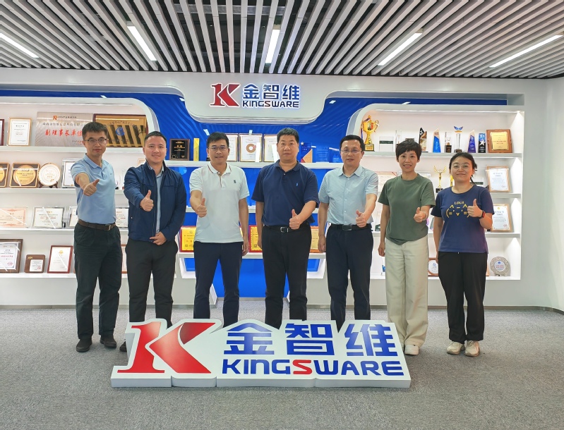 在廖万里、金卓校友的陪同下,马国进一行参观了金智维公司的文化长廊与公司展厅,详细了解企业运行情况、技术创新及市场布局。马国进对企业的快速发展和创新能力给予了高度评价,并对校友们取得的卓越成就表示了由衷的赞赏。