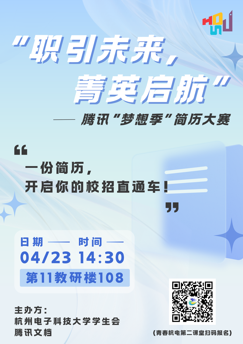 报名方式:此次活动在“二课系统”进行报名,打开公众号“青春杭电”,点击菜单栏“第二课堂”,进入“正在报名”界面即可报名